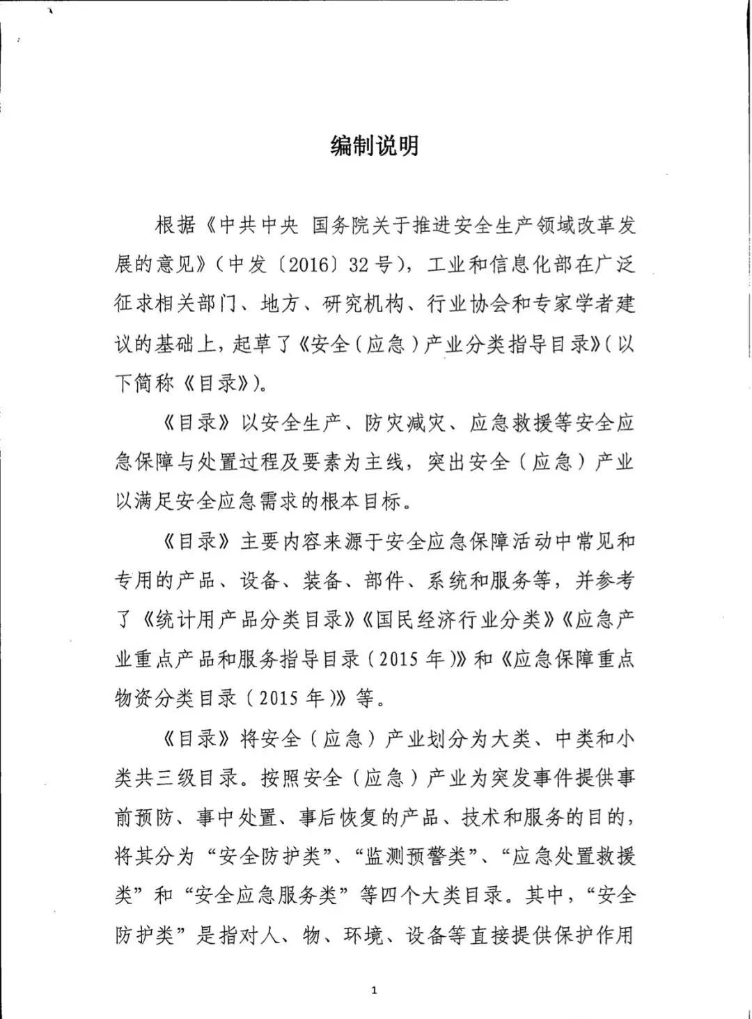 重磅 | 工信部安全生產(chǎn)司關(guān)于征求《安全(應(yīng)急)產(chǎn)業(yè)分類指導(dǎo)目錄》意見的函