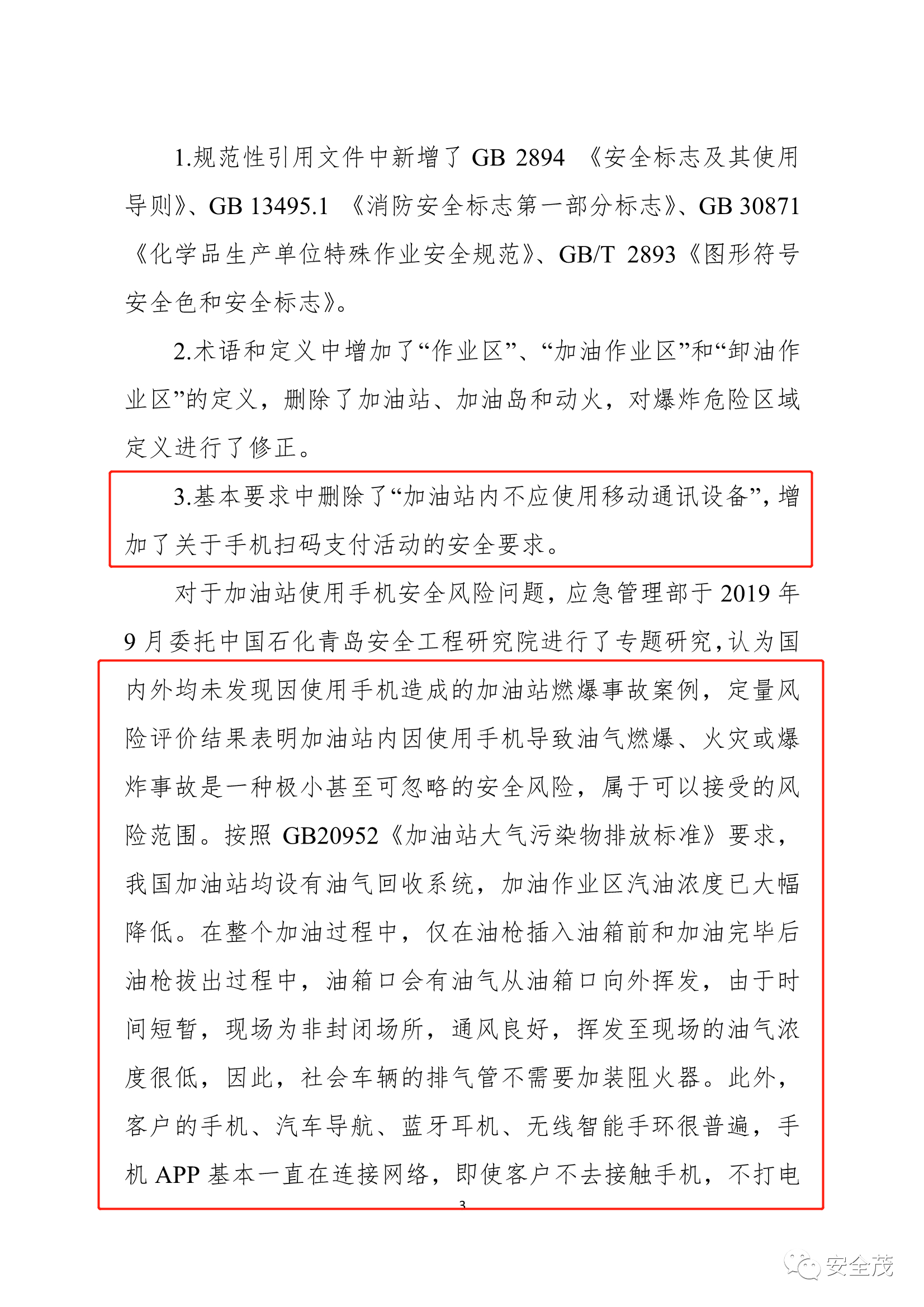 1、刪除了“加油站內(nèi)不應(yīng)使用移動(dòng)通訊設(shè)備”的要求。