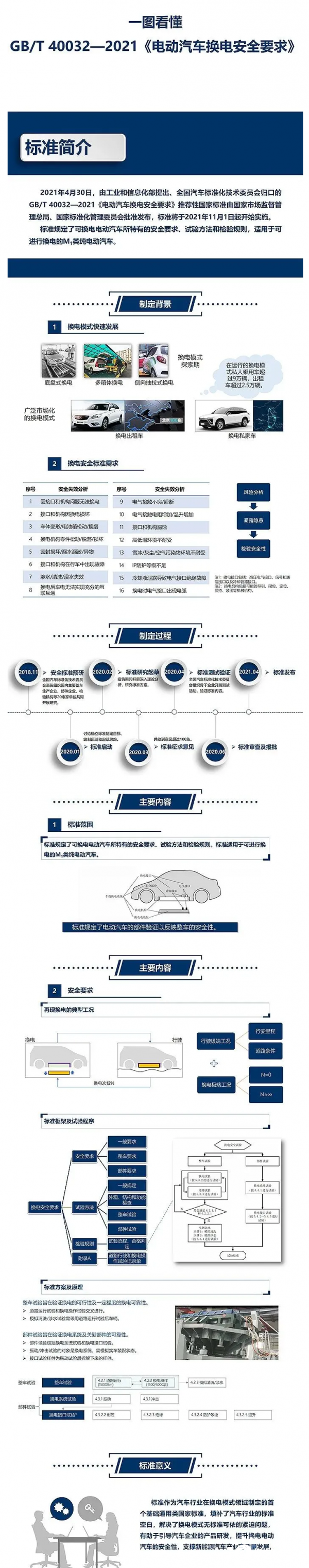 從工信部了解到,GB/T 40032-2021《電動汽車換電安全要求》推薦性國家標(biāo)準(zhǔn)的細節(jié)進一步公布,標(biāo)準(zhǔn)在2021年4月30日發(fā)布,將于2021年11月1日起開始實施,另外該國家標(biāo)準(zhǔn)要求為推薦性標(biāo)準(zhǔn),而不是強制性標(biāo)準(zhǔn)。