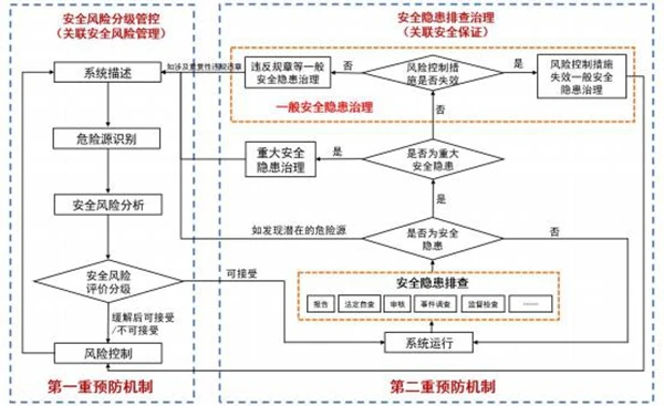 如發(fā)現(xiàn)重大安全隱患,應(yīng)按照8.3的要求進(jìn)行治理;如發(fā)現(xiàn)一般安全隱患,應(yīng)當(dāng)按照8.4的要求進(jìn)行治理;排查中如發(fā)現(xiàn)潛在的危險源,應(yīng)回溯到“7.2系統(tǒng)描述”進(jìn)行定位和梳理,適時啟動安全風(fēng)險分級管控流程識別危險源并管控相關(guān)風(fēng)險;如評估發(fā)現(xiàn)的問題不屬于上述任何一類,可選擇是否改進(jìn)后,回到系統(tǒng)運行環(huán)節(jié)。