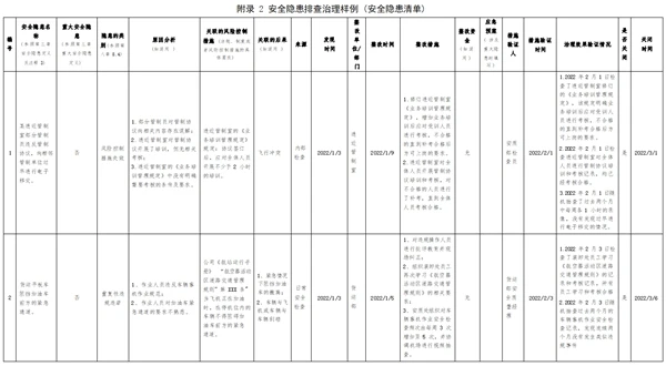(2)對重大安全隱患除填入安全隱患清單外,還應(yīng)建立專門的信息檔案,包括重大安全隱患的治理方案、復(fù)查驗收報告以及報送情況等各種記錄和文件。