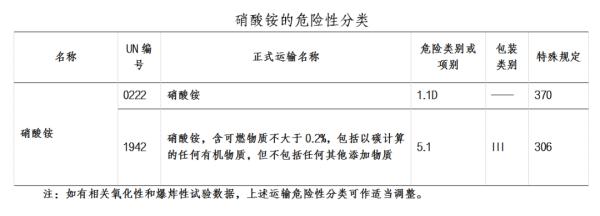 為確保硝酸銨的運輸安全,避免重大安全事故的發(fā)生,在硝酸銨運輸和使用時必須嚴格按照規(guī)定要求進行危險性分類和包裝,并