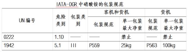 UN編號1942的硝酸銨在空運時,對照IATA-DGR技術規(guī)定,可選擇客貨機和純貨機兩種方式。當用客貨機運輸時,不允許單一包