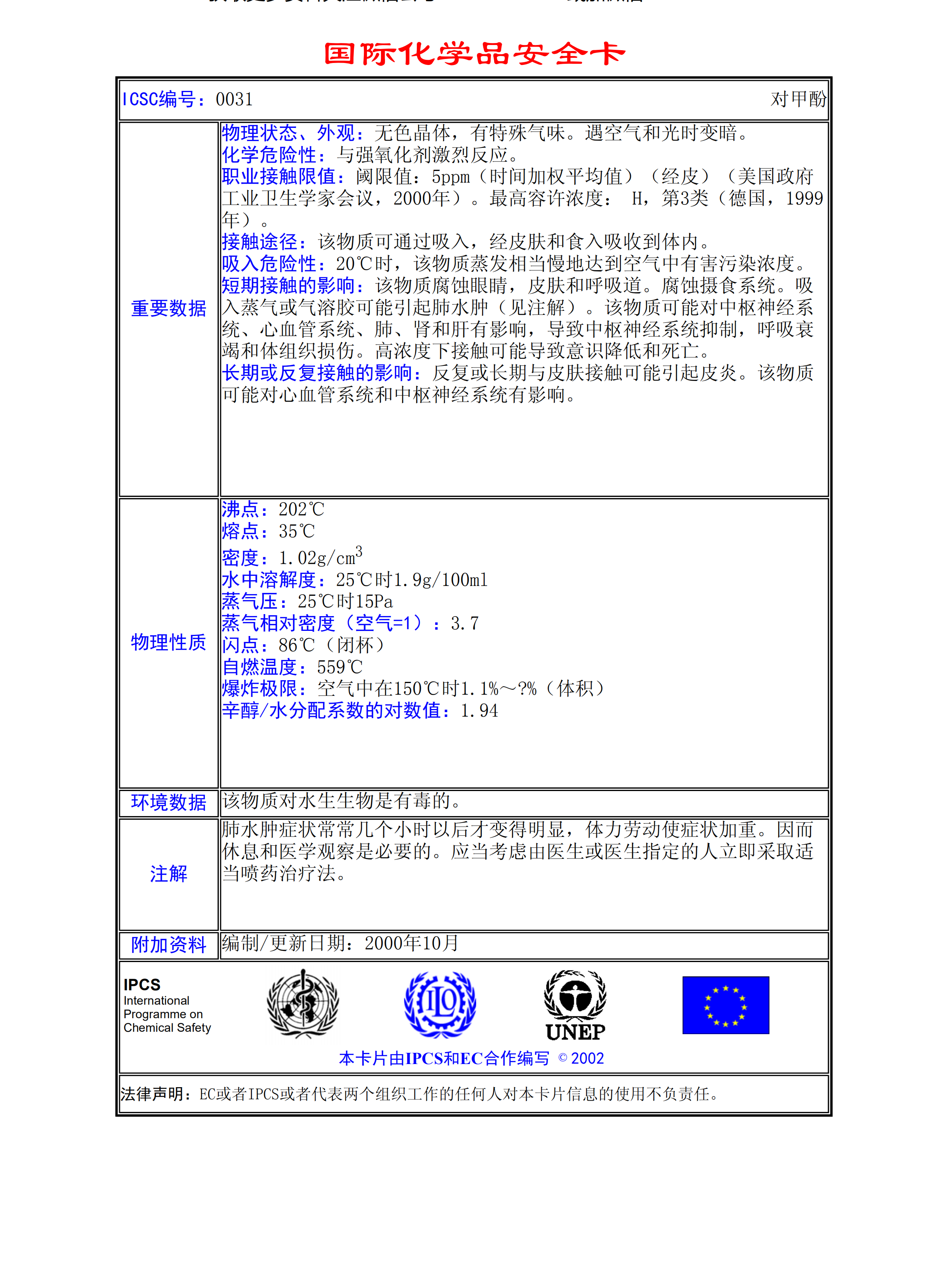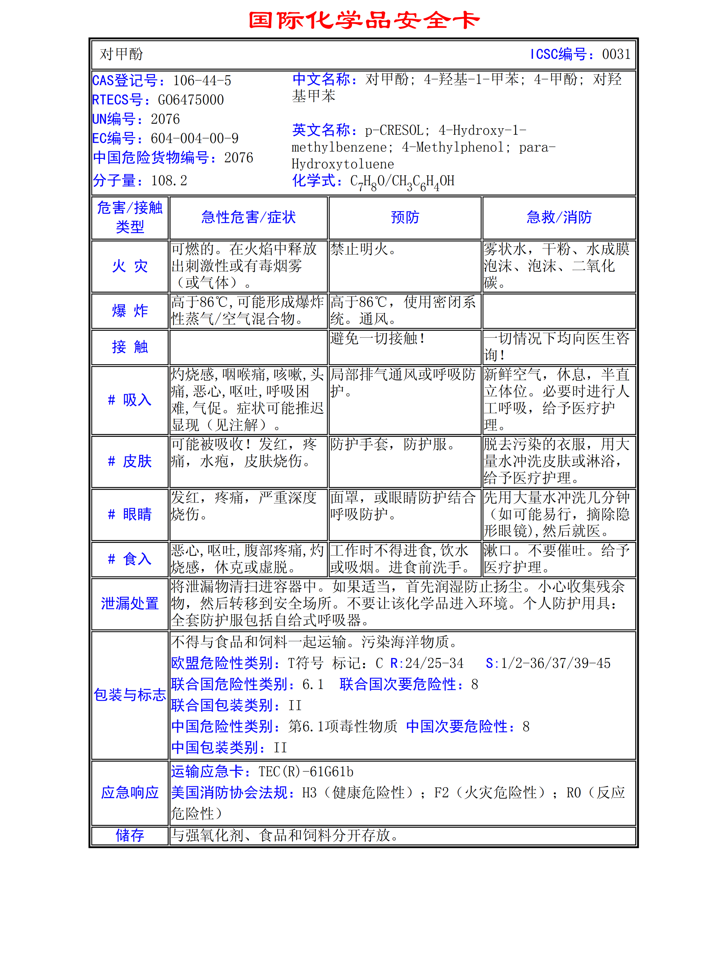 對(duì)甲酚MSDS