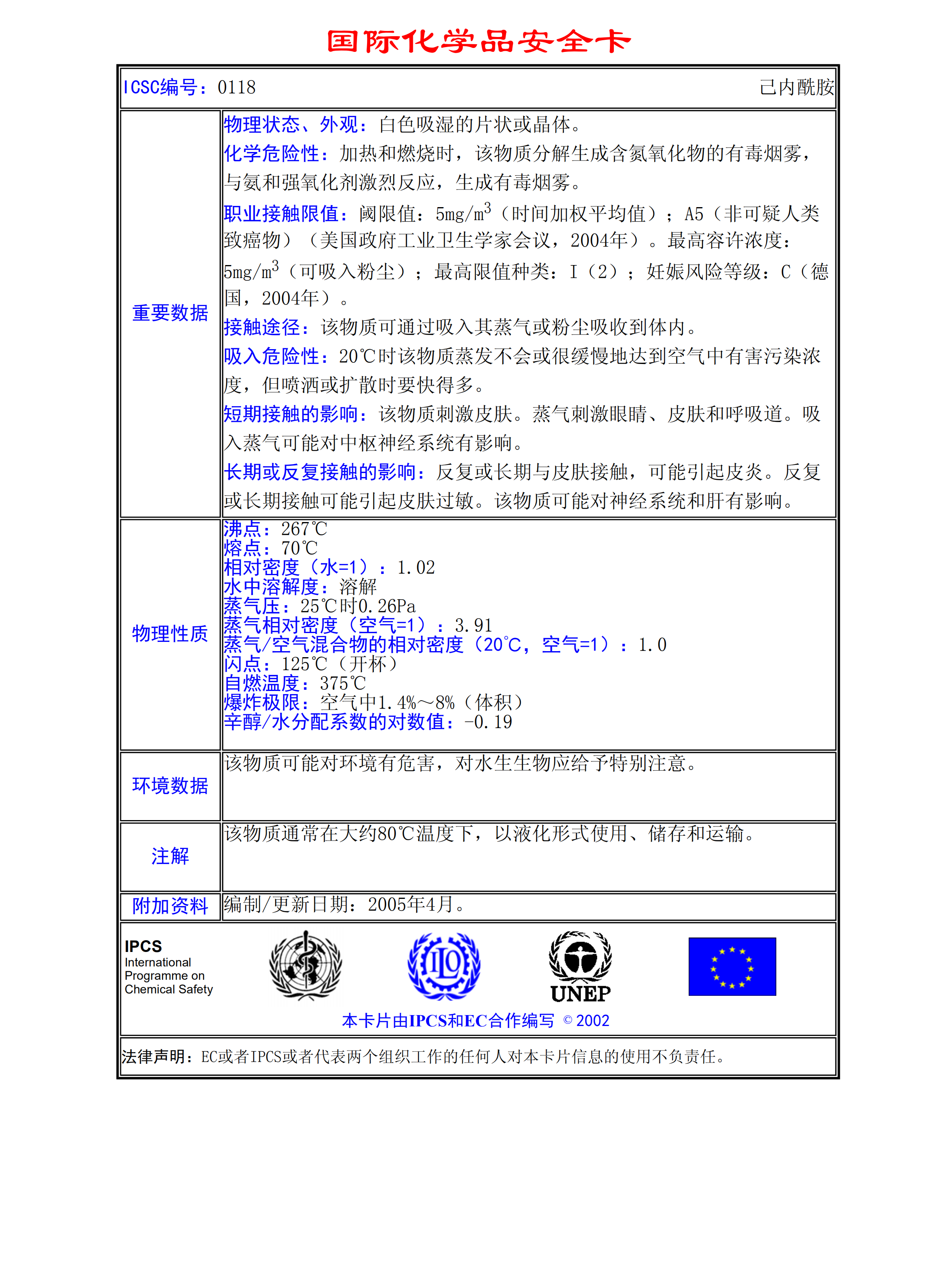 己內(nèi)酰胺MSDS