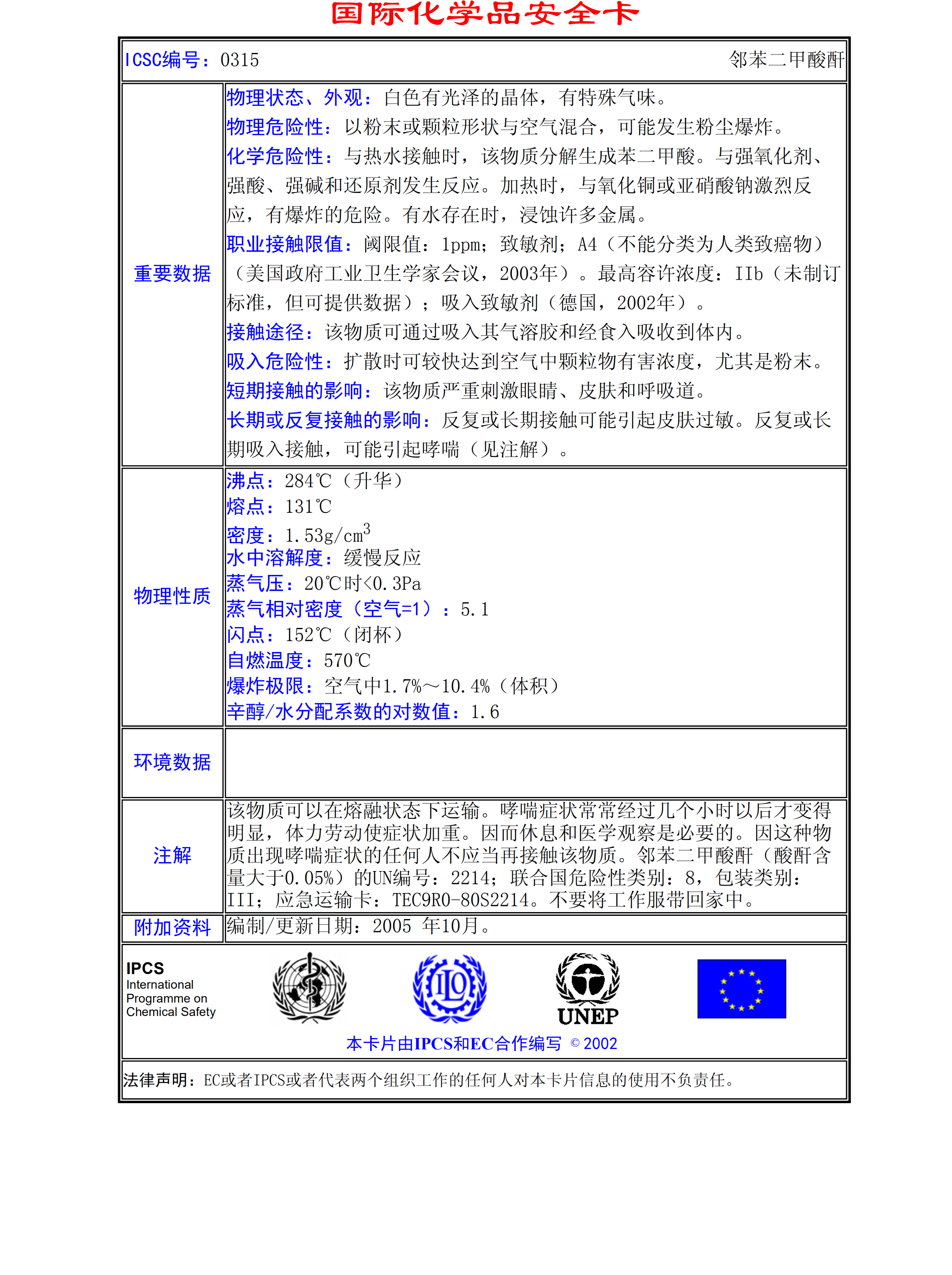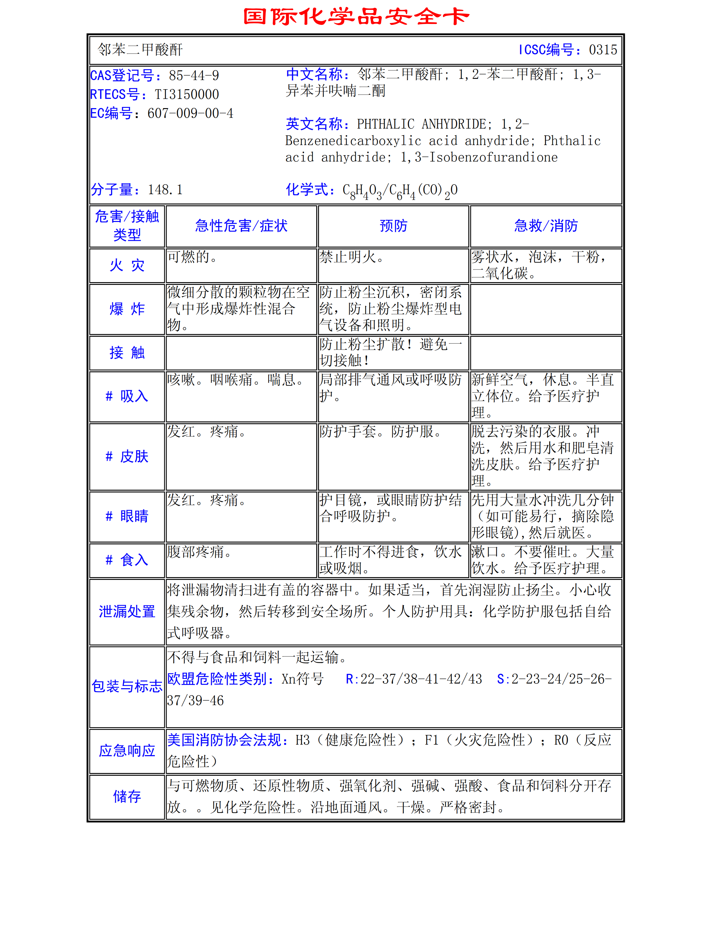 鄰苯二甲酸酐MSDS