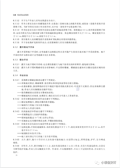 GB16423-2020《金屬非金屬礦山安全規(guī)程》,2021年9月1日起實(shí)施!