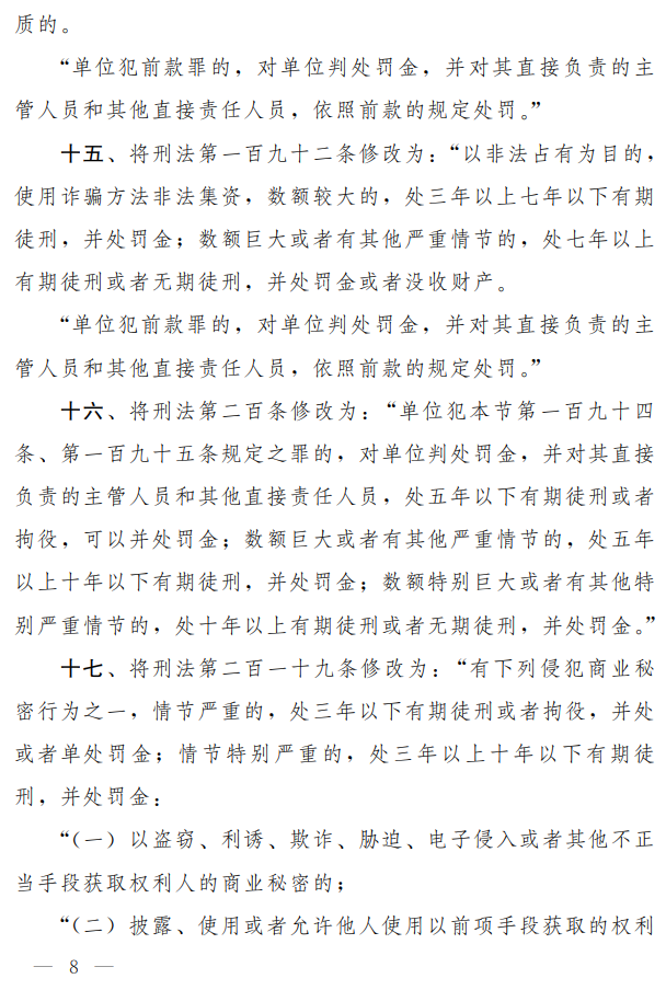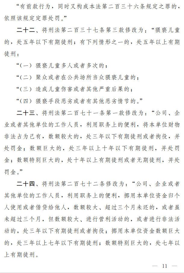 第十三屆全國人大常委會(huì)第二十二次會(huì)議對(duì)《中華人民共和國刑法修正案(十一)(草案二次審議稿)》進(jìn)行了審議,現(xiàn)公布《中華人民共和國刑法修正案(十一)(草案二次審議稿)》全文。