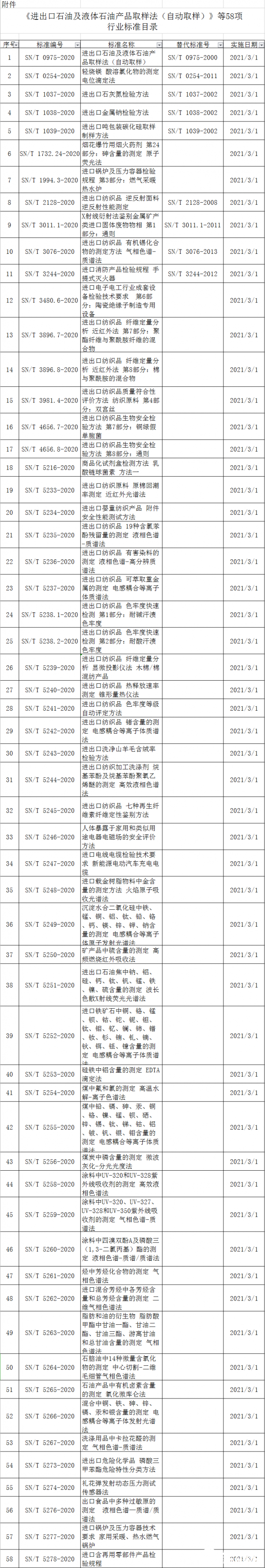 海關(guān)總署公告2020年第98號(關(guān)于發(fā)布《進(jìn)出口石油及液體石油產(chǎn)品取樣法(自動取樣法)》等58項行業(yè)標(biāo)準(zhǔn)的公告 )