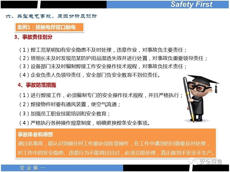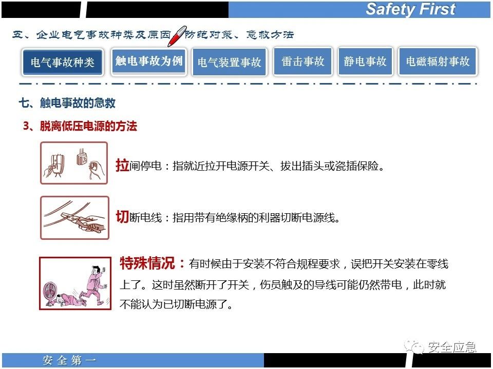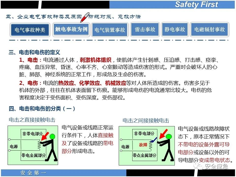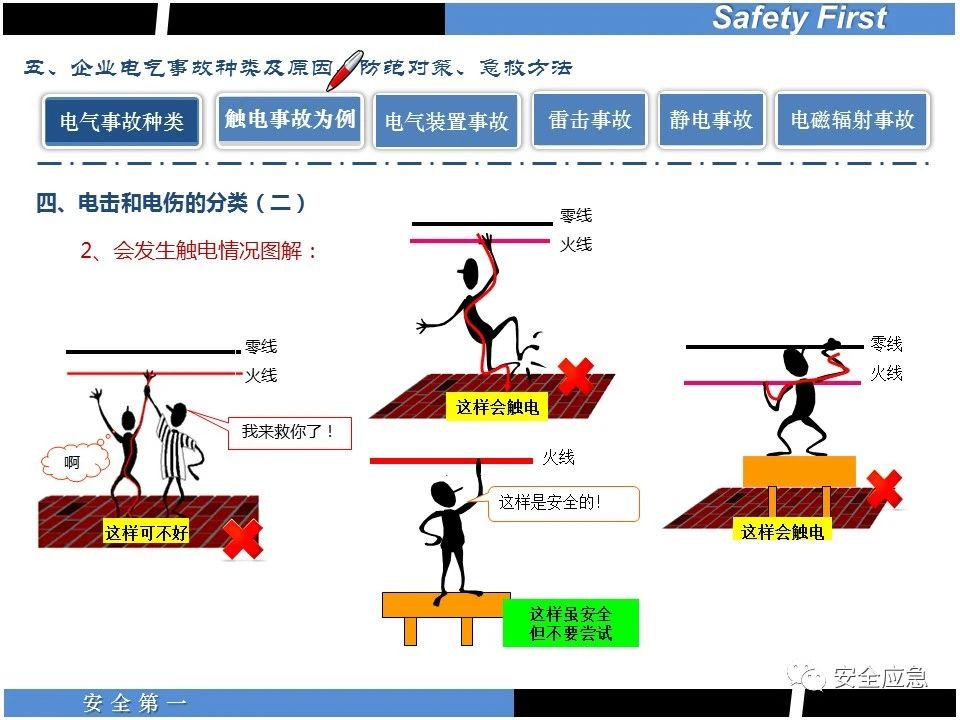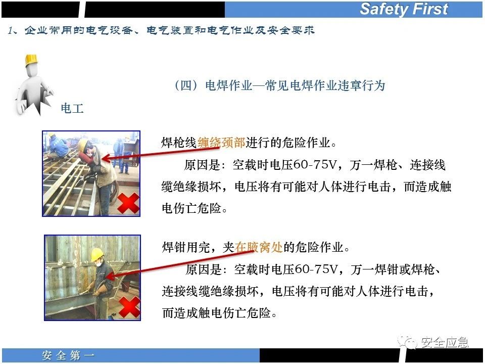 案例73 事故案例73:某35變電站準(zhǔn)備10kV避雷器試驗(yàn)。作業(yè)人員會(huì)同運(yùn)行人員準(zhǔn)備查看設(shè)備實(shí)際情況,拆卸10kV開(kāi)關(guān)柜背板螺栓,打開(kāi)了柜門(mén)上的電磁鎖,并打開(kāi)了后柜門(mén)后,作業(yè)人員探頭進(jìn)入開(kāi)關(guān)柜內(nèi)時(shí),對(duì)開(kāi)關(guān)柜放電。 其它案例見(jiàn)17、18、19、20、21、22、23、50、52。 (27)多組人員組織混亂 案例74 事故案例74:某單位開(kāi)展500kV線路停電檢修和地線融冰試驗(yàn)。1名工作人員不聽(tīng)他人勸阻,登塔拆除引流線。隨后開(kāi)展地線融冰試驗(yàn),該工作人員觸電死亡。 其它案例見(jiàn)45、46、47、48。 (28)交底不認(rèn)真 案例75 事故案例75:某工作負(fù)責(zé)人帶領(lǐng)兩名工作人員準(zhǔn)備在10kV線路裝設(shè)接地線。工作前,工作負(fù)責(zé)人沒(méi)有進(jìn)行班前(后)會(huì),沒(méi)有分配工作任務(wù),也沒(méi)有交代安全注意事項(xiàng),另外兩人也沒(méi)有主動(dòng)詢(xún)問(wèn),相互提醒,導(dǎo)致工作負(fù)責(zé)人無(wú)監(jiān)護(hù)誤登運(yùn)行線路,造成觸電。 其它案例見(jiàn)32。 (29)監(jiān)護(hù)不到位 l 單人工作無(wú)監(jiān)護(hù) 事故案例:36。 l 監(jiān)護(hù)人參與工作 事故案例:11。 l 監(jiān)護(hù)不認(rèn)真,或默許違章行為 事故案例:67。 (30)人員、工作安排不恰當(dāng) 案例76 事故案例76:某供電所安排不具備單獨(dú)工作資格和能力的新入廠員工上桿進(jìn)行配變?cè)O(shè)備搶修工作,由于安全距離不夠,員工經(jīng)驗(yàn)不足,監(jiān)護(hù)不到位,導(dǎo)致觸電。 案例77 事故案例77:某高壓試驗(yàn)班開(kāi)展定檢預(yù)試作業(yè)。工作負(fù)責(zé)人與工作人員在抄錄放電計(jì)數(shù)器銘牌,另一名剛參加工作不久的工作人員拿著自制試驗(yàn)線插入移動(dòng)電源盤(pán)插座內(nèi),然后,用左、右手分別拿住兩個(gè)鱷魚(yú)夾準(zhǔn)備對(duì)放電器搭接做試驗(yàn),左、右手習(xí)慣性的分別握住了兩個(gè)鱷魚(yú)夾的導(dǎo)體部分,此時(shí)電流通過(guò)人體,漏電保護(hù)器沒(méi)有動(dòng)作,觸電死亡。 (31)單人作業(yè) l 野外單人巡線、勘察 案例78 事故案例78:某單位開(kāi)展線路巡視時(shí),單人作業(yè),在被告知“巡視完N58塔后切勿過(guò)江,要沿原路返回”的情況下,仍然獨(dú)自一人違規(guī)游泳過(guò)江,溺水身亡。 案例79 事故案例79:某單位野外勘察時(shí),某工作人員在未告知工作負(fù)責(zé)人的情況下,獨(dú)自一人返回車(chē)輛所在地,途中墜落懸崖暈倒,受輕傷并失蹤12小時(shí)。 附件:最全面的電氣安全培訓(xùn),實(shí)用!