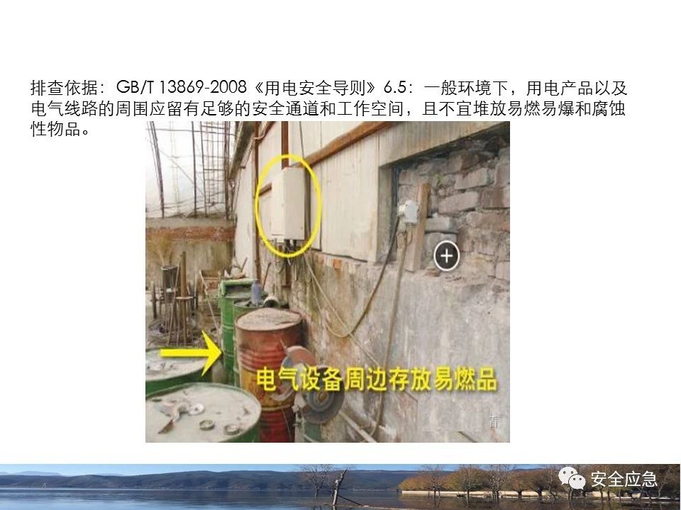 5.1.1規(guī)定一般條件下,用電產(chǎn)品的周?chē)鷳?yīng)留有足夠的安全通道和工作空間,且不應(yīng)堆放易燃、易爆和腐蝕性物品。
