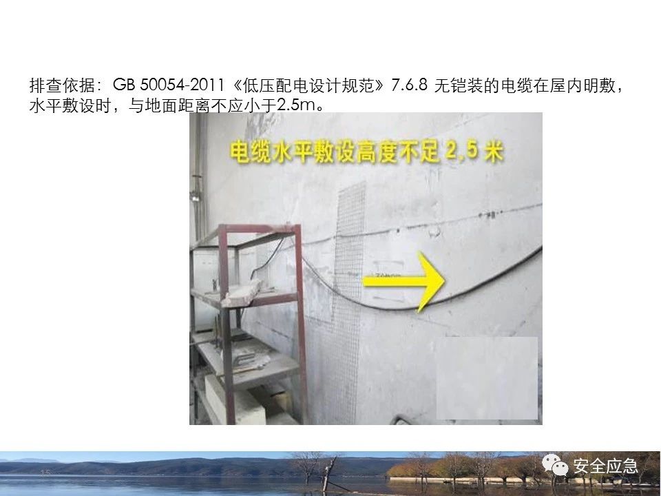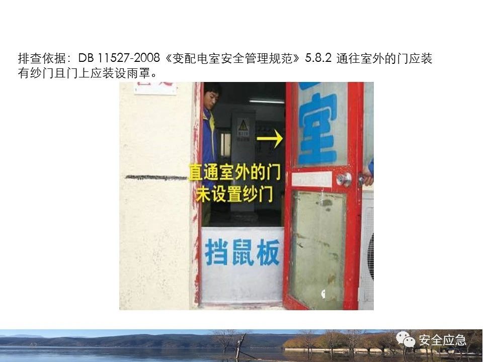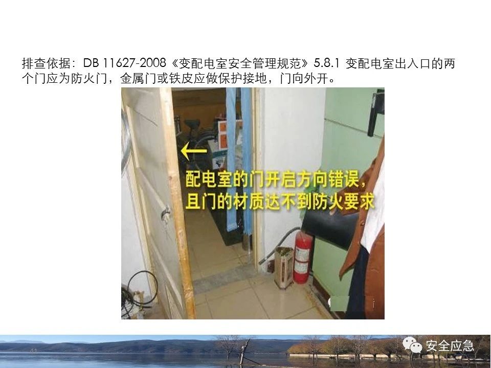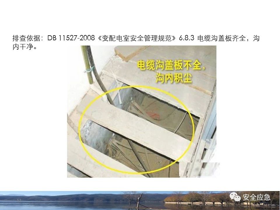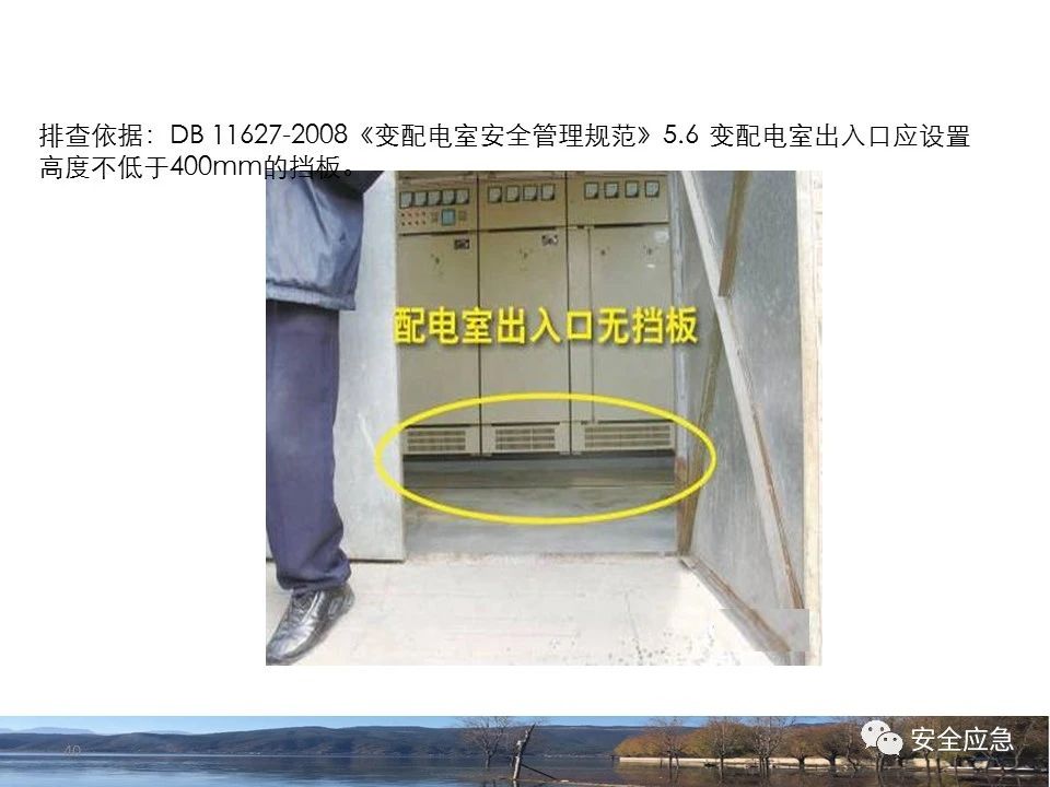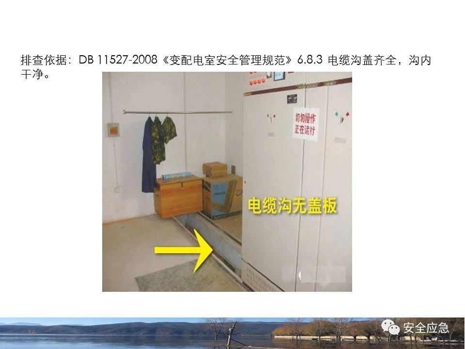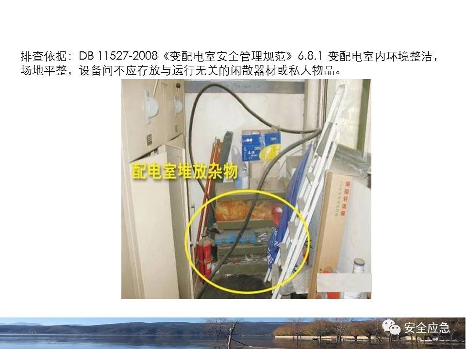 8.1.6規(guī)定配電箱、開(kāi)關(guān)箱周?chē)鷳?yīng)有足夠2人同時(shí)工作的空間和通道,不得堆放任何妨礙操作、維修的物品,不得有灌木、雜草。