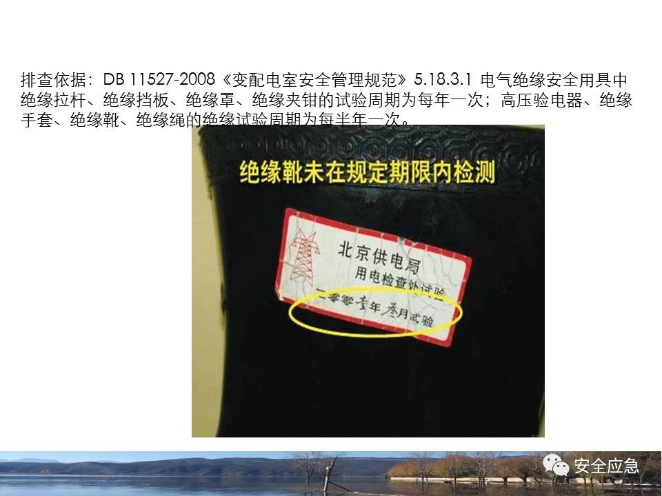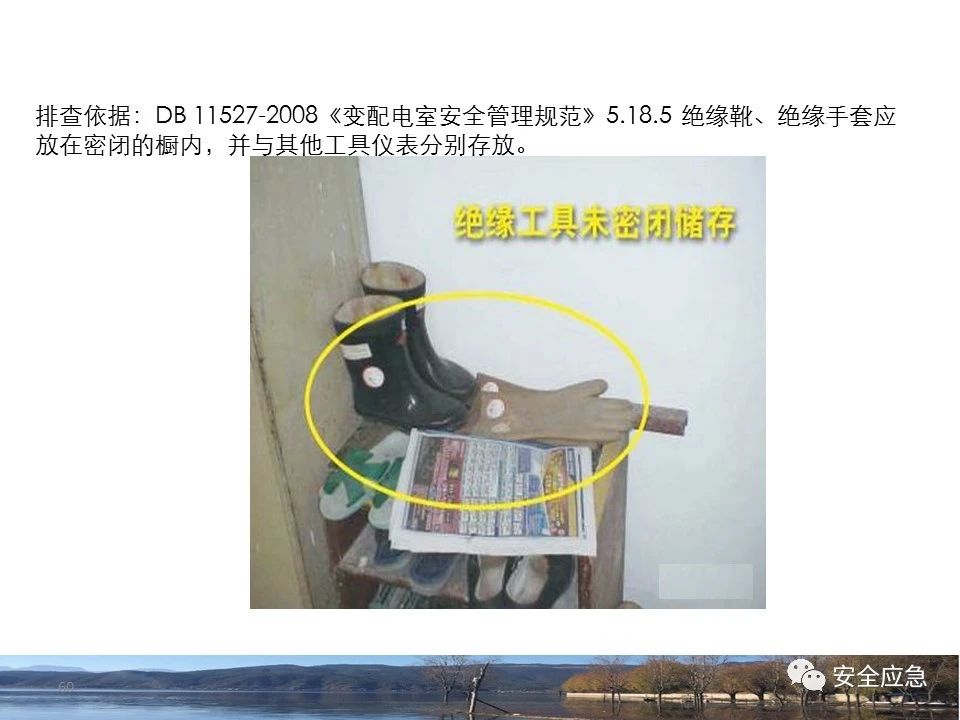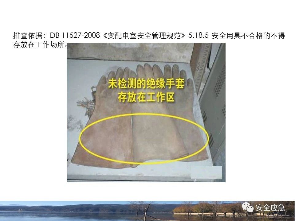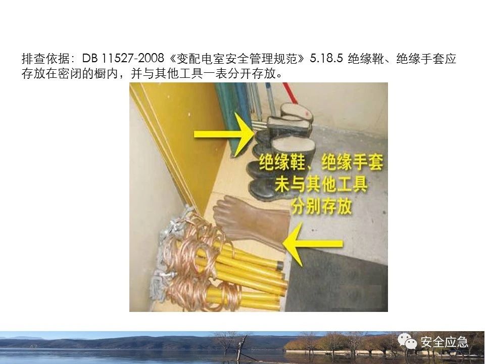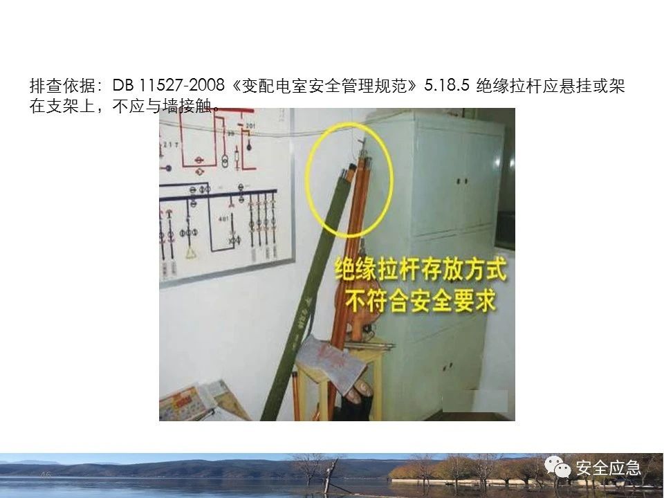 案例1 事故案例1:某輸電管理所對(duì)某35kV線路停電登檢,其中一段與10kV線路共桿塔架設(shè),35kV線路在上層,10kV線路在下層,工作前10kV、35kV線路均停電、驗(yàn)電懸掛接地線。工作過(guò)程中10kV線路送電,3名工作班成員1死2傷。 案例2 事故案例2:某供電所開(kāi)展拆除10kV空線作業(yè)。該桿塔有2回10kV線路,一回在上方,運(yùn)行狀態(tài)。待拆除空線在下方。作業(yè)人員未進(jìn)行驗(yàn)電,登桿后掛接地線。在先掛好B相后,由于掛不到AC相,爬到電桿頂上,此時(shí)碰觸到運(yùn)行線路觸電死亡。 案例3 事故案例3:某供電所開(kāi)展10kV線路拆除作業(yè)。桿塔西側(cè)待拆除線路在檢修狀態(tài),東側(cè)2回10kV線路分上下兩層在運(yùn)行狀態(tài)。工作任務(wù)結(jié)束后,工作負(fù)責(zé)人看見(jiàn)塔上電纜搭在第二臺(tái)鋼塔橫擔(dān)上,隨即上塔處理,準(zhǔn)備從塔的西面移至東面準(zhǔn)備抬電纜時(shí),后頸部碰觸到帶電線路觸電死亡。 (2)安全距離不夠的線路未停電 案例4 事故案例4:事故前,施工單位在正常運(yùn)行的10kV青龍線上方搭建竹跨越架。10kV青龍線99-100號(hào)桿段上方有帶電運(yùn)行的35kV田金線跨越,最短距離5.37米。由于10kV青龍線跨越架倒塌,導(dǎo)致斷桿、多檔導(dǎo)線脫落。隨后,工作人員開(kāi)展缺處工作。在10kV青龍線導(dǎo)線收緊時(shí),導(dǎo)線被抬升后與上方運(yùn)行的35kV田金線安全距離不足放電,導(dǎo)致收線的8名施工人員觸電,4人死亡4人受傷。 案例5 事故案例5:某單位進(jìn)行400V干線收緊弧垂工作,工作地點(diǎn)上方交叉跨越的10kV線路距離400V主干配電線#1桿桿頂830mm,但未停電。工作人員準(zhǔn)備實(shí)施緊線作業(yè),當(dāng)左腿跨至橫擔(dān)上時(shí),上方交叉跨越的10kV線路對(duì)其右肩背放電。 案例6 事故案例6:某施工隊(duì)開(kāi)展新建10kV線路穿越運(yùn)行的110kV線路作業(yè),兩回線距離僅有1.3m 左右,造成110kV線路對(duì)新架設(shè)10kV線路放電,死亡1人,重傷1人。 案例7 事故案例7:某施工隊(duì)進(jìn)行10kV新建立桿施工過(guò)程中,扒桿倒在鄰近運(yùn)行的10kV運(yùn)行線路上,導(dǎo)致人身觸電,2人死亡,1人受傷。 案例8 事故案例8:某施工隊(duì)負(fù)責(zé)人開(kāi)展低壓線路架設(shè)工作。手拉導(dǎo)線由B2#桿展放上到配變后,兩名工作人員手持導(dǎo)線同時(shí)上到帶電的變壓器雙桿上,一名工作人員在上層工作時(shí)與10kV裸導(dǎo)線較近,將手持的400V絕緣導(dǎo)線誤碰到10kV變框小母線后,導(dǎo)至兩人同時(shí)觸電。 案例9 事故案例9:某施工隊(duì)開(kāi)展10kV高壓跌落熔斷器安裝工作。本應(yīng)在原10kV阿租支線0號(hào)桿、1號(hào)桿,10kV一街Ⅱ回線26號(hào)桿、28號(hào)桿各裝一組接地線。但實(shí)際10kV一街Ⅱ回線27號(hào)桿大號(hào)側(cè)、原10kV阿租支線1號(hào)桿大號(hào)側(cè)各裝設(shè)了1組接地線。同時(shí),接地線的接地樁埋深為41 cm,因土壤長(zhǎng)期干旱,造成接地電阻較大(實(shí)測(cè)值:333歐),遠(yuǎn)遠(yuǎn)超過(guò)接地要求值(30歐),接地線失去接地保護(hù)作用。由于10kV一街線坡頭支線(原帶電)與10kV一街Ⅱ回線(原不帶電)桿之間有交叉跨越(垂直距離約2米),檔距較大,刮大風(fēng)導(dǎo)致10kV一街線坡頭支線向上舞動(dòng),對(duì)10kV一街Ⅱ回線放電,致使2名作業(yè)人員觸電,1死1傷。 其它案例見(jiàn)37、38。 (3)錯(cuò)停線路 案例10 事故案例10:某工作人員與調(diào)度聯(lián)系停電線路時(shí),錯(cuò)誤說(shuō)成其他線路,導(dǎo)致其他線路停電而工作線路未停電。隨后,工作人員在沒(méi)有采取驗(yàn)電、掛接地線等安全措施的情況下便登桿,造成觸電。 (4)開(kāi)關(guān)柜相鄰柜之間沒(méi)有隔板,但未停相鄰間隔 案例11 事故案例11:某檢修班組開(kāi)展10kV開(kāi)關(guān)柜(GG1A柜)檢修作業(yè)。工作人員獨(dú)自爬上4321隔離開(kāi)關(guān)柜頂從事4321隔離開(kāi)關(guān)檢修相關(guān)工作。因其與相鄰間隔的帶電的10kVII段母線安全距離不夠,觸電死亡。 案例12 事故案例12:某工作人員在開(kāi)關(guān)柜內(nèi)進(jìn)行二次接線,由于工作地點(diǎn)與相鄰柜之間沒(méi)有隔板,意外墜入相鄰帶電開(kāi)關(guān)柜,導(dǎo)致觸電。 (5)不停電不正確使用安全工器具開(kāi)展低壓作業(yè) 案例13 事故案例13:某廠家對(duì)220kV變壓器的繞組溫度計(jì)進(jìn)行更換消缺工作。在沒(méi)有對(duì)繞組溫度計(jì)工作電源(220V)停電的情況下作業(yè)。將帶有220V電壓的電纜芯線上的絕緣帶拆除時(shí),誤碰帶電芯線造成觸電死亡。 案例14 事故案例14:某供電所員工檢查一客戶家中斷電情況。巡線時(shí)發(fā)現(xiàn)220V低壓線路導(dǎo)線斷線,在未斷開(kāi)低壓開(kāi)關(guān)、未戴絕緣手套的情況下,試圖將導(dǎo)線卷起時(shí),不慎觸碰帶電導(dǎo)線中間裸露部分,導(dǎo)致觸電死亡。 案例15 事故案例15:某工作人員在檢查時(shí)發(fā)現(xiàn)220V低壓線路故障點(diǎn),在未戴手套、未使用絕緣梯子的情況下,在拆除三通PVC管時(shí),左手不慎觸碰帶電絕緣導(dǎo)線破損點(diǎn)裸露部分,導(dǎo)致觸電受傷。 2.驗(yàn)電環(huán)節(jié) (6)不檢查設(shè)備狀態(tài)、不驗(yàn)電 案例16 事故案例16:供電所某員工在未攜帶驗(yàn)電器、接地線、絕緣手套、絕緣靴、安全帽等