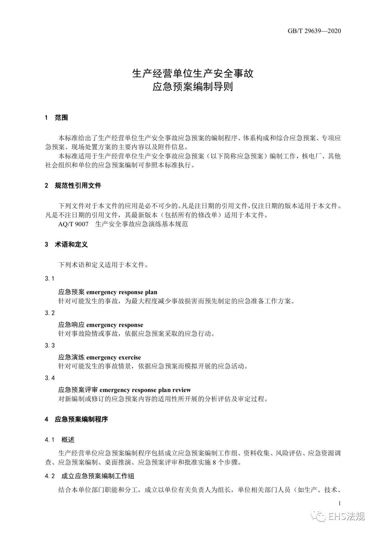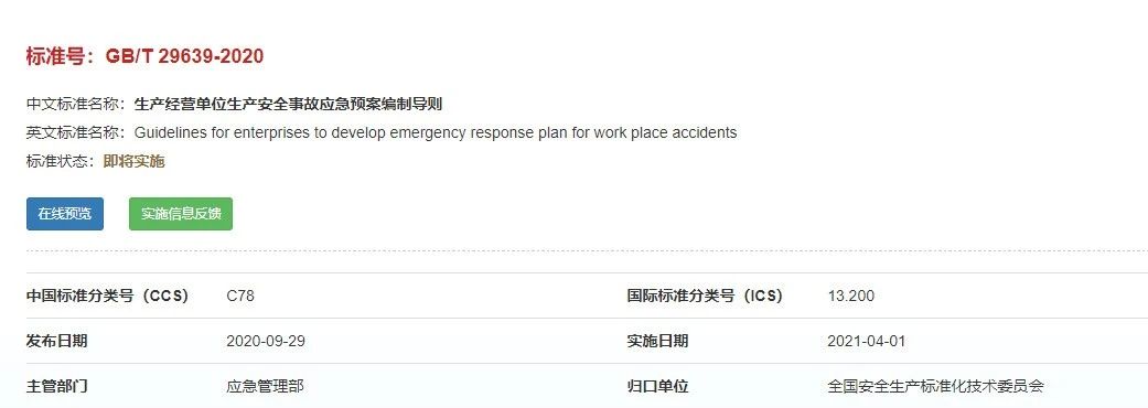重磅!GBT29639-2020《生產(chǎn)經(jīng)營單位生產(chǎn)安全事故應(yīng)急預(yù)案編制導(dǎo)則》發(fā)布,21年4月實施!