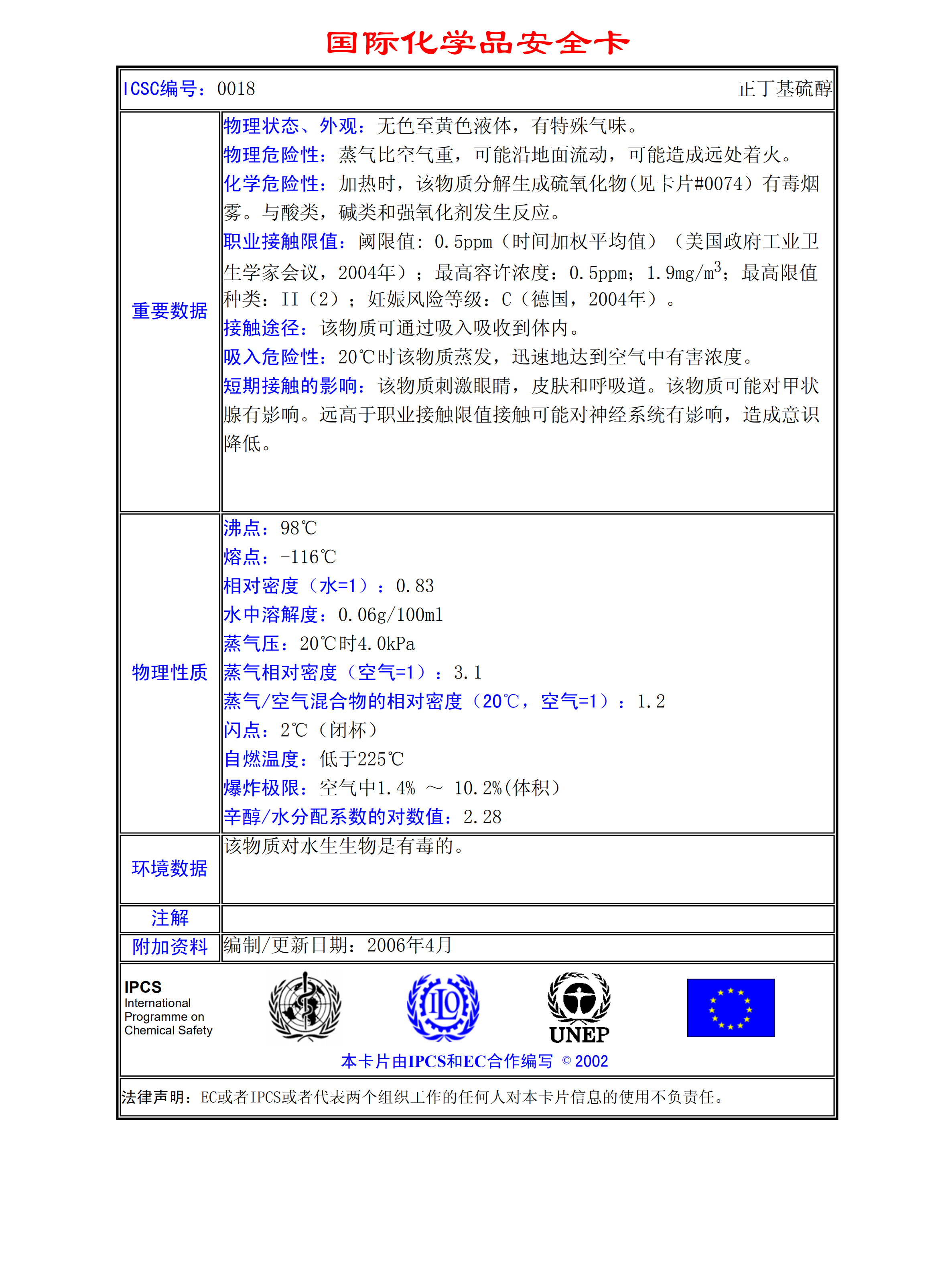 正丁基硫醇MSDS