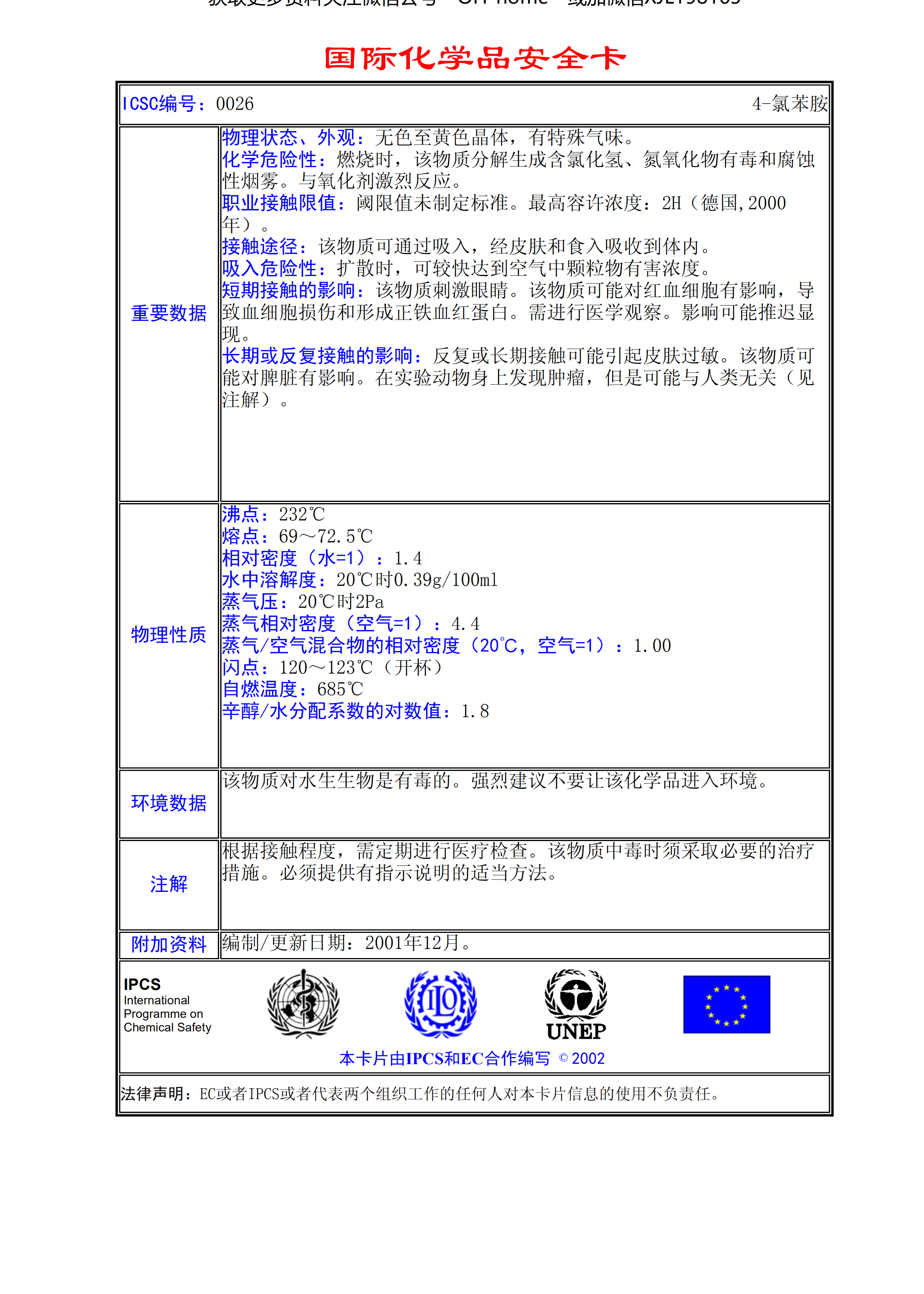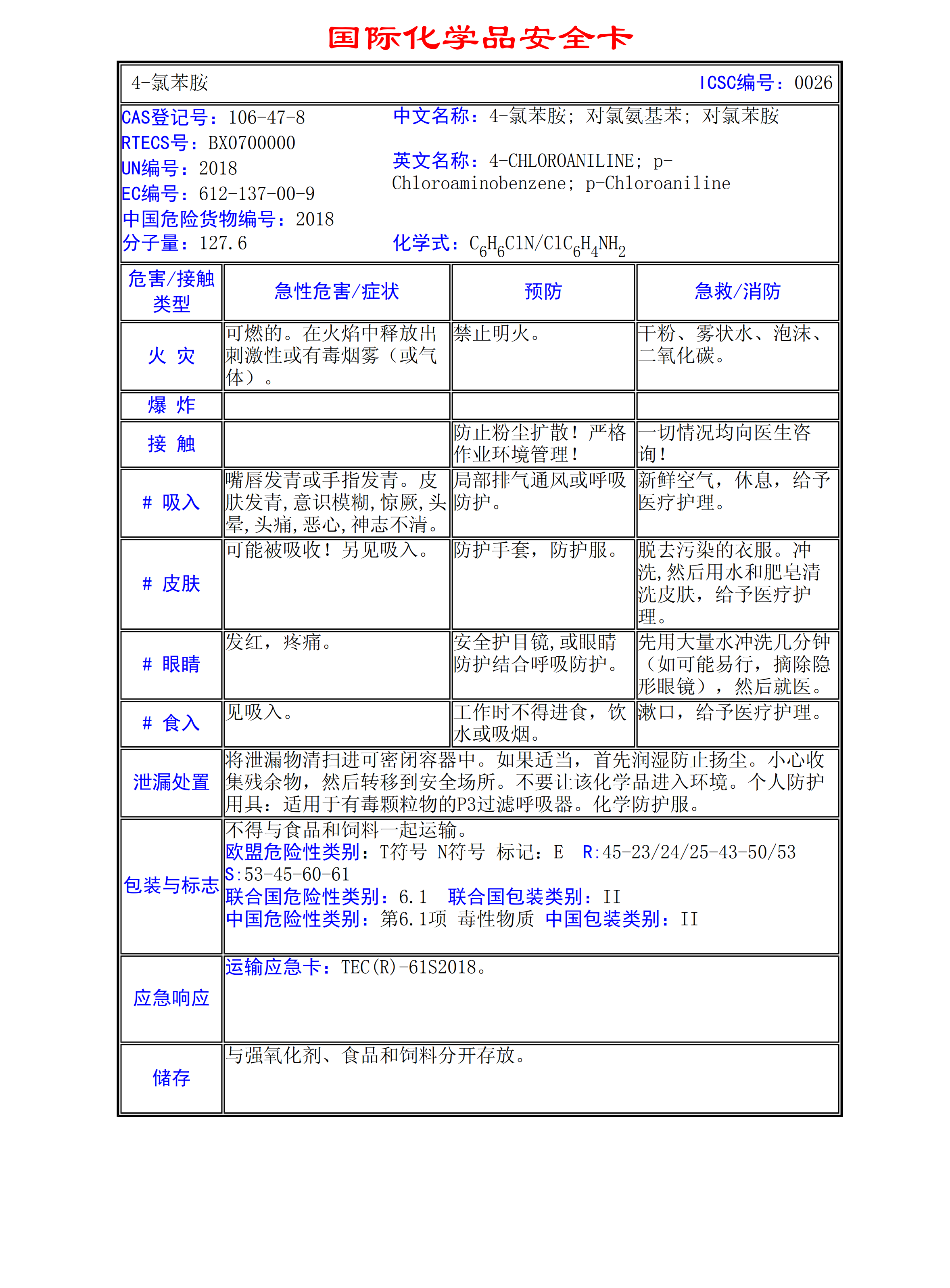 4-氯苯胺MSDS