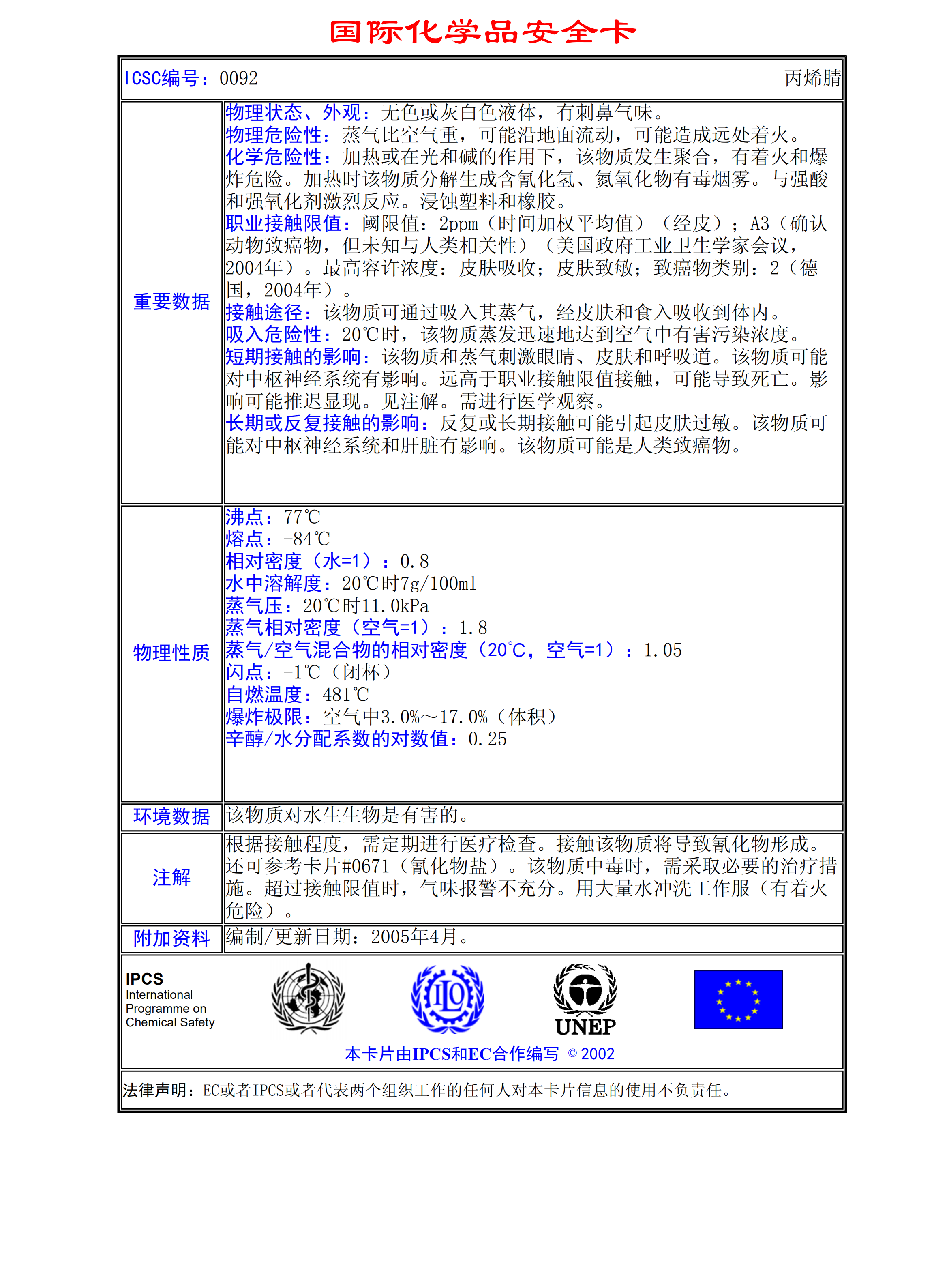 丙烯月青MSDS