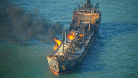 國家危險(xiǎn)化學(xué)品應(yīng)急救援舟山隊(duì)緊急馳援海上船只相撞火災(zāi)事故
