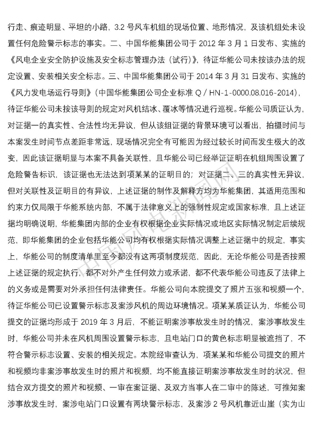華能浙江某風電場葉片結冰冰塊掉落砸傷路人案宣判